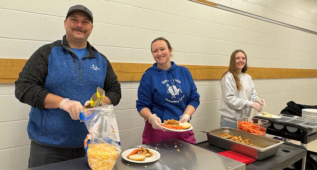 Jackfish and Kirby volunteers served breakfast and lunch to Lac La Biche students through the Kids Are Worth It program. This program aims to support students’ well-being by providing nutritious meals.