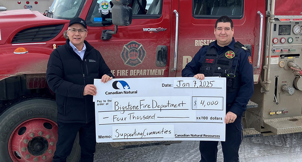 Canadian Natural assisted the Bigstone Volunteer Fire Department’s ongoing efforts to enhance their vital services. Our donation went towards critical infrastructure, uniforms, and food/refreshments for volunteers during long shifts.